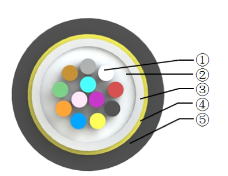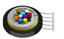 1 光纖、 2 纖膏、 3 松套管、 4 芳綸紗、 5 PE外護(hù)套
